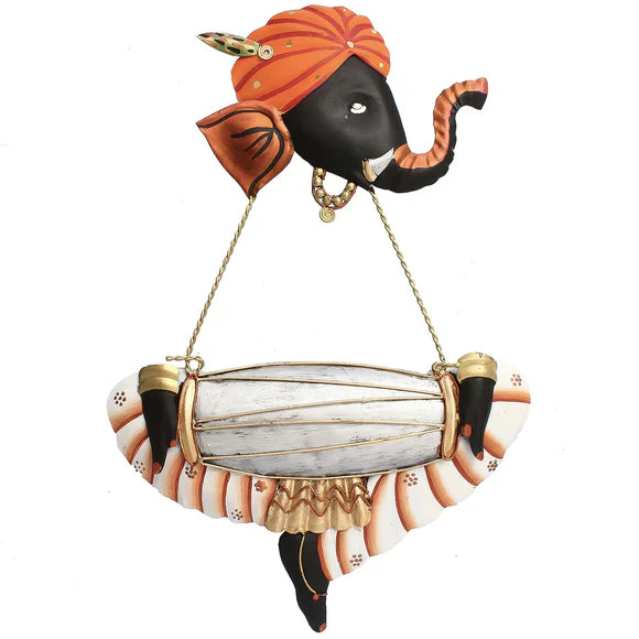 Ganpati ji Playing Dholak Metal Wall Hanging - Length: 11 x Width: 0.5 x Height: 16 Inches